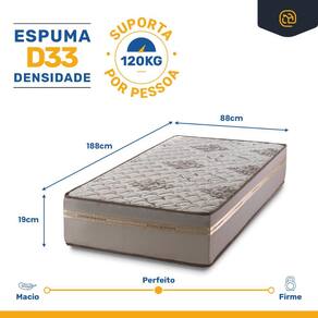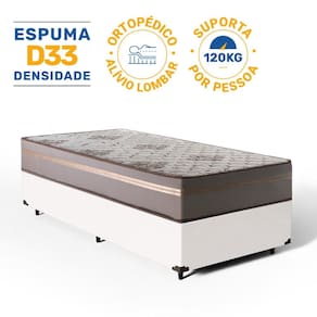 Espuma D33 / Tecido Jacquard e Poliéster (colchão); Madeira tratada e Revestimento sintético (base box)Vendido e entregue por Lucas Colchões
