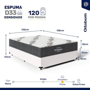 Complementando este colchão, a base box é feita de madeira tratada e revestida, suportando até 150 Kg por pessoa. Ela não só eleva seu colchão a uma altura ideal para fácil acesso, mas também estabiliza seu sono com uma fundação sólida e confiável. Esta combinação não apenas maximiza seu conforto, mas também a funcionalidade do seu espaço de descanso.
