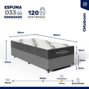 Complementando este colchão, a base box é feita de madeira tratada e revestida, suportando até 150 Kg por pessoa. Ela não só eleva seu colchão a uma altura ideal para fácil acesso, mas também estabiliza seu sono com uma fundação sólida e confiável. Esta combinação não apenas maximiza seu conforto, mas também a funcionalidade do seu espaço de descanso.