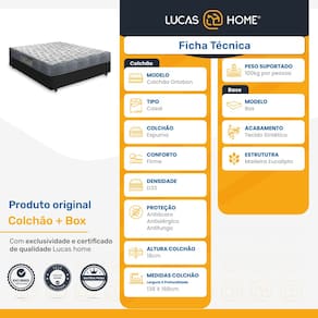 Complementando este colchão, a base box é feita de madeira tratada e revestida, suportando até 150 Kg por pessoa. Ela não só eleva seu colchão a uma altura ideal para fácil acesso, mas também estabiliza seu sono com uma fundação sólida e confiável. Esta combinação não apenas maximiza seu conforto, mas também a funcionalidade do seu espaço de descanso.