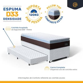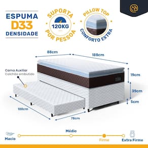 Se você valoriza conforto e suporte em seu descanso, nosso colchão com espuma D33 e pillow top é a solução ideal. A densidade D33 oferece um suporte firme que é aprimorado pela camada extra de conforto proporcionada pelo pillow top, tornando cada noite de sono uma experiência luxuosa. Este design cuidadosamente pensado combina firmeza com uma suavidade acolhedora, adequado para quem busca aliviar pontos de pressão enquanto dorme.