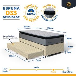 Para quem busca um descanso firme e duradouro, o colchão de espuma D33 é a escolha ideal. Com Pillow Top e tampo bordado, oferece uma camada extra de conforto e suporte, perfeita para aliviar os pontos de pressão e garantir o relaxamento ideal.