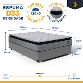 Para quem busca um descanso firme e duradouro, o colchão de espuma D33 é a escolha ideal. Com Pillow Top e tampo bordado, oferece uma camada extra de conforto e suporte, perfeito para aliviar os pontos de pressão e garantir o relaxamento ideal.