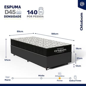 Complementando este colchão, a base box é feita de madeira tratada e revestida, suportando até 150 Kg por pessoa. Ela não só eleva seu colchão a uma altura ideal para fácil acesso, mas também estabiliza seu sono com uma fundação sólida e confiável. Esta combinação não apenas maximiza seu conforto, mas também a funcionalidade do seu espaço de descanso.