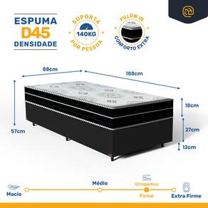 - Dimensões do produto (larg. x comp. x alt.) Solteiro:88x188x37cm;