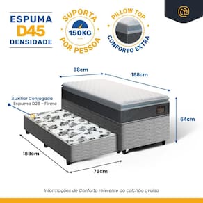 - Tipo de colchão Auxiliar: Espuma D28;