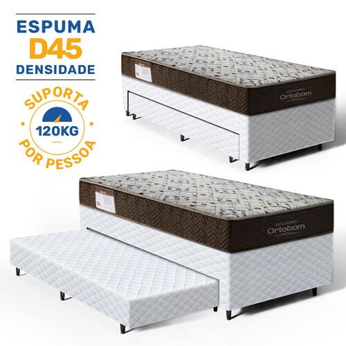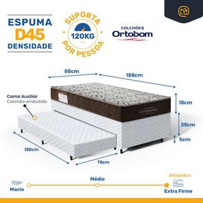 Cama Box com Colchao de Espuma D45 Solteiro Ortobom ISO 150 + Auxiliar de Espuma Unique Solteiro 88cm - Branco