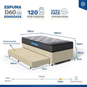 - Dimensões do produto (larg. x comp. x alt.) Solteiro: 88x188x44cm;