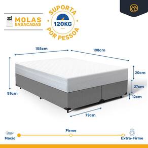 - Dimensões (larg. x comp. x alt.) 158x198x20cm.