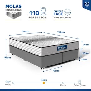 Cama Box com Colchão de Molas Ensacadas Double Face Essence Probel Queen 158cm - Cinza