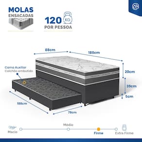 - Tipo de colchão Auxiliar: Espuma D28;