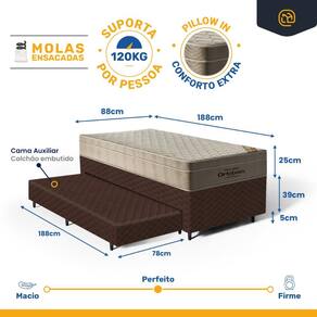 E o colchão auxiliar? Este é feito de espuma, oferecendo um conforto firme e ortopédico para quem valoriza suporte adicional. Este conjunto é ideal para quem busca uma solução prática e confortável para otimizar seu espaço e melhorar a qualidade do sono.