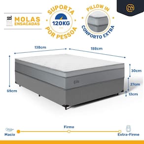 Complementando este colchão, a base box é feita de madeira tratada e revestida, suportando até 150 Kg por pessoa. Ela não só eleva seu colchão a uma altura ideal para fácil acesso, mas também estabiliza seu sono com uma fundação sólida e confiável. Esta combinação não apenas maximiza seu conforto, mas também a funcionalidade do seu espaço de descanso.