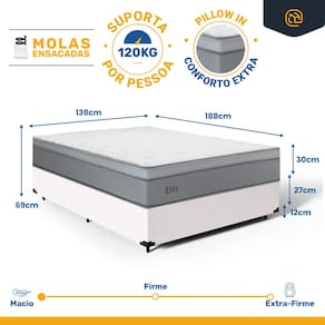 Deseja conforto extra e suporte individualizado? Nosso colchão com Molas Ensacadas e Pillow In oferece uma camada de conforto que se adapta ao seu corpo, aliviando pontos de pressão para um sono revigorante. Ideal para quem busca maciez e suporte duradouro, com capacidade para até 120 kg por pessoa.