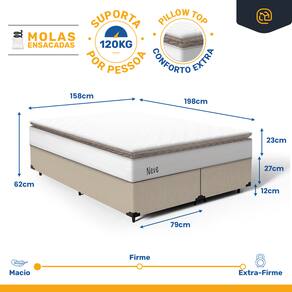 - Dimensões (larg. x comp. x alt.) Queen: 158x198x39cm Bipartido(2 Partes de 79);