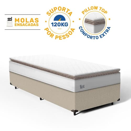 Complementando este colchão, a base box é feita de madeira tratada e revestida, suportando até 150 Kg por pessoa. Ela não só eleva seu colchão a uma altura ideal para fácil acesso, mas também estabiliza seu sono com uma fundação sólida e confiável. Esta combinação não apenas maximiza seu conforto, mas também a funcionalidade do seu espaço de descanso.