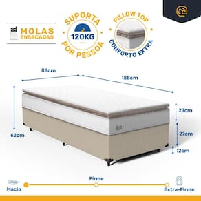 - Dimensões (larg. x comp. x alt.) Solteiro: 88x188x39cm;