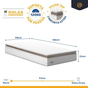 Este colchão com molas ensacadas oferece suporte individualizado, proporcionando conforto macio ideal para quem valoriza noites de sono restauradoras. Com Pillow Top e tampo bordado, a camada extra de conforto alivia pontos de pressão e maximiza o relaxamento.
