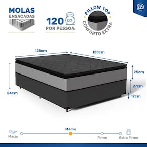 - Dimensões (larg. x comp. x alt.) 138x188x25cm.