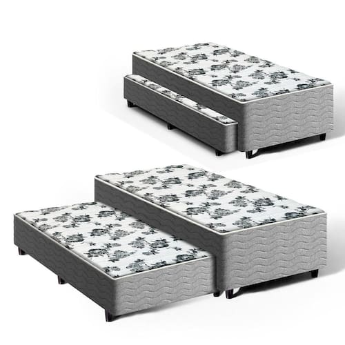 EspumaProcura uma solução completa para otimizar o espaço e garantir conforto em seu quarto? A Cama UniqueBicama combina uma base box, um colchão principal e uma cama auxiliar embutida, todos usando espuma de alto suporte, firme e ortopédico. Esta configuração é ideal para quem tem espaço limitado mas não quer abrir mão do conforto e da praticidade.