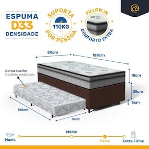 - Tipo de colchão Auxiliar: Espuma D28;