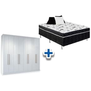 Cama Box Conjugada Casal Union Ortobom + Guarda Roupa Master Vip 8.4 Branco