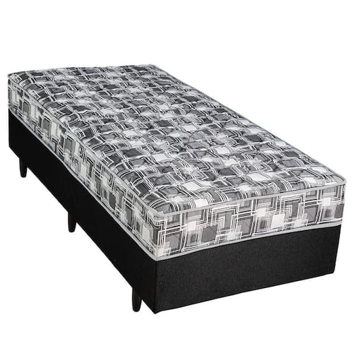 O Box Berflex Conjugado Mola Ensacada e um excelente produto para modernizar de forma pratica o seu quarto. Produzido com molejo estrutural, molas ensacadas de arame de aco com bitola de 1,70 mm e media de 199 molas/m, garante maior conforto e durabilidade. Sua estrutura em caixa de madeira de eucalipto com 32 cm de altura suporta ate 90 kg, com suporte medio de 150 kg/m. O tampo e confeccionado em malha 100 poliester, bordado com espuma flexivel 100 poliuretano de densidade nominal D-26 kg/m, TNT e fibra de poliester de 150 g/m, com tecido faixa 100 poliester bordado com espuma flexivel 100 poliuretano de densidade nominal D-20 kg/m e TNT. Produzido seguindo os rigorosos protocolos de qualidade aprovados internacionalmente pelo INMETRO, o box apresenta acabamento elegante, predominante na cor preta.