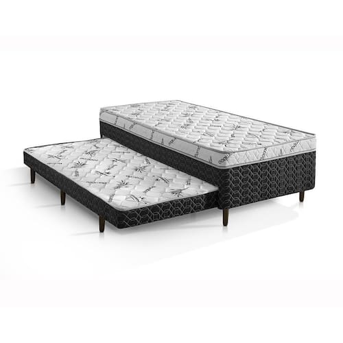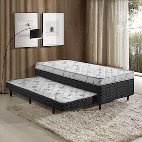 A Cama Box Conjugada Solteiro com Auxiliar Sensor D-28 Preta combina durabilidade e estilo. Fabricada em madeira de eucalipto anti-cupim, possui tampo em poliéster frio para conforto, laterais em poliéster e pés em madeira com rodízios para fácil movimentação. O auxiliar solteiro proporciona praticidade para visitas. Com design moderno em Branco com Preto, essa cama oferece uma solução funcional e elegante para o seu quarto. A cor do produto pode apresentar variações em relação à imagem exibida e ao item físico. Produto Montado: Sim Abertura para Ventilação: Não Acompanha Cama Auxiliar: Sim Acompanha Colchão: Sim Altura da Base Box (Sem o Colchão): 45 cm Altura do Colchão (Sem a Base Box): 8 cm Altura Máxima dos Pés: 13.0000 Ambiente Principal: Quarto Antiácaro: Sim Antialérgico: Sim Antifungo: Sim Bicama: Sim Cantoneiras: Não Certificado: INMETRO codigo_ean: 7900288055675 Conjugado: Sim Cor: Branco/Preto Cor do Produto: Branco/Preto Densidade da Espuma: D-28 Itens Inclusos: 1 Cama Box + 1 Cama Auxiliar + 1 Kit de Pés Linha ou Coleção: Cama Box Conjugada Solteiro D-28 com Auxiliar Manual de Especificação Técnica: https://product-hub-prd.madeiramadeira.com.br/975735/documents/c7002c5d-92aa-46db-8d3b-029593c4d31b2649440568117380073799419.pdf Manual de Montagem e Instalação: https://product-hub-prd.madeiramadeira.com.br/975735/documents/6740ed74-54b6-45c5-b8f4-7d9abb7e895a264944456811738007385655.pdf Marca: Colchões Sensor Material da Estrutura: Eucalipto Material dos Pés: Plástico Necessita Montagem: Sim Nível de Conforto: Firme Origem do Produto: Nacional Peso: 40 kg Pillow: Pillow Euro Possui Baú: Não Possui Pillow: Sim Precisa virar: Não Recomendações de Uso, Manutenção e Limpeza: Álcool em gel Revestimento: Poliéster Tamanho: Solteiro Tamanho de Colchão: Solteiro Tipo de Cama Box: Box Conjugado Tipo de espuma: Espuma convencional Tipo do Colchão: Espuma Marca: Colchões Sensor