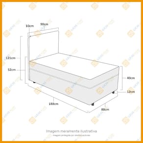 - Dimensões do produto (largura x comprimento x altura): Solteiro 88x188x52cm.