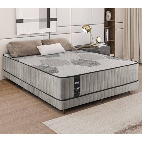 A Cama Box Conjugado King (193x61x203) Molas Nanofiber Gazin CR35307 é a solução ideal para quem busca inovação, bem-estar e qualidade em cada noite de sono. Seu tecido de alta gramatura em malha 355 gramas com tratamento em fios de grafeno elimina completamente a eletricidade estática do corpo, ajudando a reduzir o desconforto e proporcionando uma sensação térmica agradável durante toda a noite. O colchão conta com camadas de conforto em Espuma Relax Gel e Espuma D40 certificada, que oferecem alta resiliência e suporte, sensação térmica equilibrada e absorção de movimentos, garantindo um sono sem interrupções. A sustentação do Nanofiber fica por conta do molejo Bluewave em aço 2.0, que proporciona suporte firme para diferentes biótipos. Com molas ensacadas individualmente, o colchão oferece maior absorção de movimentos, ausência total de ruído e alinhamento correto da coluna. A base, fabricada em madeira de reflorestamento, garante resistência e sustentabilidade. Seu design elevado evita o acúmulo de poeira no ambiente, melhorando a qualidade do ar e da respiração.