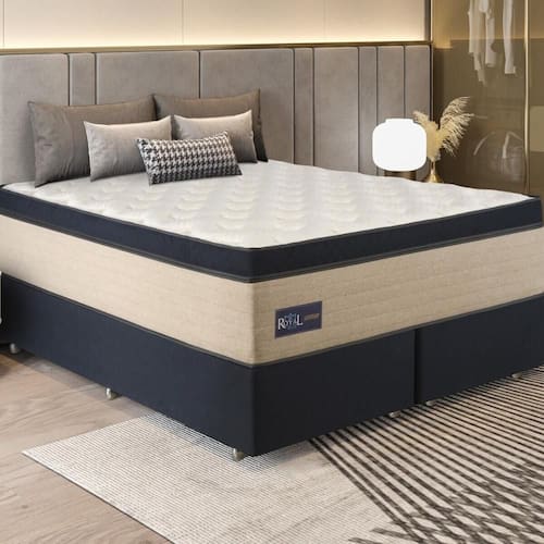 A Cama Box Conjugado King (193x78x203) Molas Royal Blue Gazin CR35301 foi desenvolvida para proporcionar o máximo de conforto e sofisticação. Seu colchão conta com um revestimento em Matelassê, Hiper Soft e Fibra Siliconada, garantindo uma superfície extremamente macia, aveludada e antialérgica. A espuma D33 e HR de alta resiliência oferece suporte firme, com rápida recuperação da forma autêntico, garantindo noites de sono tranquilas e restauradoras. A espuma Hiper Soft proporciona a sensação de deitar em uma nuvem, garantindo um toque suave e um conforto incomparável. Já a espuma HR confere elasticidade e sustentação, ajudando no alinhamento da coluna e prevenindo dores e desconfortos. O sistema de molas ensacadas Bluewave 2.0 proporciona suporte individualizado, eliminando ruídos e absorvendo os movimentos do corpo. Sua borda estabilizadora garante maior durabilidade e alinhamento postural adequado, suportando até 170 kg. A base do Royal Blue é produzida com madeira de reflorestamento, reforçando a resistência e a sustentabilidade do produto. Seu revestimento lateral em tecido malha suede agrega sofisticação e maciez ao conjunto, além de ser fácil de manter e limpar.