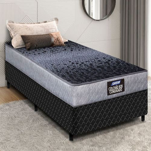 O Cama Box Conjugado Solteiro 88cm Supreme Gazin oferece conforto e resistencia ideais para o dia a dia. Seu revestimento superior e lateral em tecido plano evita o acumulo de poeira e materiais organicos, facilitando a limpeza. Conta com camada de espuma cilindrica laminada D20, espuma D28 e estrutura em madeira de reflorestamento, garantindo durabilidade e conforto. Um produto com excelente custo-beneficio e acabamento em matelasse.