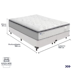 O conforto que sua casa precisa e a qualidade que você merece está na Kazamix! Colchão Probel Amsterdã – a escolha perfeita para noites de sono inigualáveis. Equipado com Molas Ensacadas Prolastic, oferece suporte individualizado, reduzindo a transferência de movimentos para um descanso mais tranquilo. Seu Pillow Top Super proporciona uma camada extra de maciez, elevando o conforto e garantindo uma experiência de luxo. Com camadas de espuma D33 e D65, o Amsterdã combina firmeza e durabilidade, enquanto as proteções antiácaro, antialérgico e antifungo criam um ambiente de sono saudável. Invista em qualidade e bem-estar com o Colchão Probel Amsterdã e transforme suas noites. Modelo: Amsterdã Marca: Probel Tamanho: Queen Dimensões: 158x198X34 (Largura x Comprimento x Altura) Conforto: Firme Sistema: Molas Ensacadas Pillow: Pillow Top Peso Máximo recomendado: 120 kg (Por pessoa) Proteções: Antiácaro, antialérgico, antifungo, antimofo Garantia: 1 ano pelo FabricanteO conforto que sua casa precisa e a qualidade que você merece está na Kazamix! Eleve o conforto e a sofisticação do seu quarto com a Cama Box! Produzida em madeira de reflorestamento reforçada, a Cama Box combina qualidade, durabilidade e um design elegante, que confere leveza e modernidade ao seu dormitório. Sua estrutura robusta suporta até 150 kg por pessoa, garantindo a sustentação perfeita para o colchão e prolongando a vida útil do produto. Com uma altura ergonômica, ela oferece maior conforto ao deitar e levantar, enquanto o acabamento de alta qualidade se adapta a qualquer estilo de decoração, unindo praticidade e estilo. Não perca tempo! Adquira agora mesmo a sua Cama Box e transforme seu dormitório com conforto e elegância. Marca: KazaMix Modelo: Box Tamanho: Queen Dimensões: 158X198X35 (Largura x Comprimento x Altura) Estrutura: Madeira Peso máximo recomendado: 150 kg (Por Pessoa) Altura do Box: 25 cm Altura dos Pés: 10 cm Altura total: 35 cm Garantia: 03 meses Selo Ecologicamente Correto Atenção: Antes de finalizar sua compra, certifique-se de que as dimensões do produto sejam adequadas para serem transportadas pelos elevadores, portas, escadas e corredores de sua residência. Ressaltamos que não nos responsabilizamos pelo transporte do produto por meios específicos, como escadas, guinchos ou içamentos.