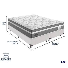O conforto que sua casa precisa e a qualidade que você merece está na Kazamix! Apresentamos o Colchão Probel Berlim, a escolha ideal para quem busca conforto e qualidade. Com Molas Ensacadas e camada Euro Pillow, ele proporciona suporte individualizado e maciez extra para um sono tranquilo. A espuma D28 oferece durabilidade e conforto, enquanto o tecido em malha e jacquard garante um toque sofisticado e respirabilidade. Além disso, conta com proteções antiácaro e antialérgico, criando um ambiente saudável para o seu descanso. Invista no seu conforto com o Colchão Probel Berlim! Modelo: Berlim Marca: Probel Tamanho: Queen Dimensões: 158x198X26 (Largura x Comprimento x Altura) Conforto: Intermediário Sistema: Molas Ensacadas Pillow: Euro Pillow Peso Máximo recomendado: 110 kg (Por pessoa) Proteções: Antiácaro, antialérgico, antifungo, antimofo Garantia: 1 ano pelo FabricanteO conforto que sua casa precisa e a qualidade que você merece está na Kazamix! Eleve o conforto e a sofisticação do seu quarto com a Cama Box! Produzida em madeira de reflorestamento reforçada, a Cama Box combina qualidade, durabilidade e um design elegante, que confere leveza e modernidade ao seu dormitório. Sua estrutura robusta suporta até 150 kg por pessoa, garantindo a sustentação perfeita para o colchão e prolongando a vida útil do produto. Com uma altura ergonômica, ela oferece maior conforto ao deitar e levantar, enquanto o acabamento de alta qualidade se adapta a qualquer estilo de decoração, unindo praticidade e estilo. Não perca tempo! Adquira agora mesmo a sua Cama Box e transforme seu dormitório com conforto e elegância. Marca: KazaMix Modelo: Box Tamanho: Queen Dimensões: 158X198X35 (Largura x Comprimento x Altura) Estrutura: Madeira Peso máximo recomendado: 150 kg (Por Pessoa) Altura do Box: 25 cm Altura dos Pés: 10 cm Altura total: 35 cm Garantia: 03 meses Selo Ecologicamente Correto Atenção: Antes de finalizar sua compra, certifique-se de que as dimensões do produto sejam adequadas para serem transportadas pelos elevadores, portas, escadas e corredores de sua residência. Ressaltamos que não nos responsabilizamos pelo transporte do produto por meios específicos, como escadas, guinchos ou içamentos.
