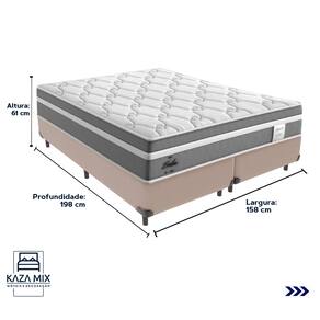 O conforto que sua casa precisa e a qualidade que você merece está na Kazamix! Apresentamos o Colchão Probel Berlim, a escolha ideal para quem busca conforto e qualidade. Com Molas Ensacadas (Molas Ensacadas) e camada Euro Pillow, ele proporciona suporte individualizado e maciez extra para um sono tranquilo. A espuma D28 oferece durabilidade e conforto, enquanto o tecido em malha e jacquard garante um toque sofisticado e respirabilidade. Além disso, conta com proteções antiácaro e antialérgico, criando um ambiente saudável para o seu descanso. Invista no seu conforto com o Colchão Probel Berlim! Modelo: Berlim Marca: Probel Tamanho: Queen Dimensões: 158x198X26 (Largura x Comprimento x Altura) Conforto: Intermediário Sistema: Molas Ensacadas Pillow: Euro Pillow Peso Máximo recomendado: 110 kg (Por pessoa) Proteções: Antiácaro, antialérgico, antifungo, antimofo Garantia: 1 ano pelo FabricanteO conforto que sua casa precisa e a qualidade que você merece está na Kazamix! Eleve o conforto e a sofisticação do seu quarto com a Cama Box! Produzida em madeira de reflorestamento reforçada, a Cama Box combina qualidade, durabilidade e um design elegante, que confere leveza e modernidade ao seu dormitório. Sua estrutura robusta suporta até 150 kg por pessoa, garantindo a sustentação perfeita para o colchão e prolongando a vida útil do produto. Com uma altura ergonômica, ela oferece maior conforto ao deitar e levantar, enquanto o acabamento de alta qualidade se adapta a qualquer estilo de decoração, unindo praticidade e estilo. Não perca tempo! Adquira agora mesmo a sua Cama Box e transforme seu dormitório com conforto e elegância. Marca: KazaMix Modelo: Box Tamanho: Queen Dimensões: 158X198X35 (Largura x Comprimento x Altura) Estrutura: Madeira Peso máximo recomendado: 150 kg (Por Pessoa) Altura do Box: 25 cm Altura dos Pés: 10 cm Altura total: 35 cm Garantia: 03 meses Selo Ecologicamente Correto Atenção: Antes de finalizar sua compra, certifique-se de que as dimensões do produto sejam adequadas para serem transportadas pelos elevadores, portas, escadas e corredores de sua residência. Ressaltamos que não nos responsabilizamos pelo transporte do produto por meios específicos, como escadas, guinchos ou içamentos.
