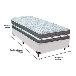 Cama Box e Colchão Black Graphite Molas Ensacadas Solteiro 88x188X27 Anjos - Branco