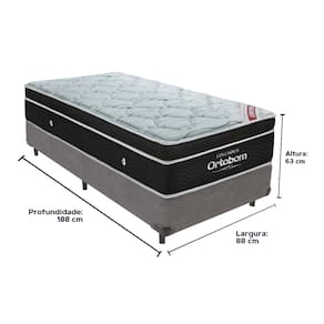 O conforto que sua casa precisa e a qualidade que você merece está na Kazamix! Desfrute do máximo conforto com o Colchão Elegant Ortobom! Sua estrutura de molas ensacadas, combinada com espuma D26 de alta densidade, proporciona o suporte perfeito para uma noite de sono revigorante. O Pillow Euro oferece um toque adicional de suavidade, garantindo um descanso ainda mais relaxante. Com o sistema No Turn, a manutenção se torna super simples, pois não é necessário virar o colchão. A fibra de bambu, que possui um toque macio e aconchegante, também contribui para um ambiente mais sustentável e confortável. Experimente o Colchão Elegant Ortobom e descubra o conforto, a qualidade e a inovação que você merece. Invista em noites de sono incríveis! Modelo: Elegant Marca: Ortobom Tamanho: Solteiro Dimensões: 88x188X28 (Largura x Comprimento x Altura) Conforto: Firme Sistema: Molas Ensacadas Pillow: Euro Pillow Peso Máximo recomendado: 150 kg (Por pessoa) Proteções: Antiácaro, antialérgico, antifungo, antimofo Garantia: 1 ano pelo FabricanteO conforto que sua casa precisa e a qualidade que você merece está na Kazamix! Eleve o conforto e a sofisticação do seu quarto com a Cama Box! Produzida em madeira de reflorestamento reforçada, a Cama Box combina qualidade, durabilidade e um design elegante, que confere leveza e modernidade ao seu dormitório. Sua estrutura robusta suporta até 150 kg por pessoa, garantindo a sustentação perfeita para o colchão e prolongando a vida útil do produto. Com uma altura ergonômica, ela oferece maior conforto ao deitar e levantar, enquanto o acabamento de alta qualidade se adapta a qualquer estilo de decoração, unindo praticidade e estilo. Não perca tempo! Adquira agora mesmo a sua Cama Box e transforme seu dormitório com conforto e elegância. Marca: KazaMix Modelo: Box Tamanho: Solteiro Dimensões: 88X188X35 (Largura x Comprimento x Altura) Estrutura: Madeira Peso máximo recomendado: 150 kg (Por Pessoa) Altura do Box: 25 cm Altura dos Pés: 10 cm Altura total: 35 cm Garantia: 03 meses Selo Ecologicamente Correto Atenção: Antes de finalizar sua compra, certifique-se de que as dimensões do produto sejam adequadas para serem transportadas pelos elevadores, portas, escadas e corredores de sua residência. Ressaltamos que não nos responsabilizamos pelo transporte do produto por meios específicos, como escadas, guinchos ou içamentos.