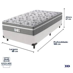 O conforto que sua casa precisa e a qualidade que você merece está na Kazamix! O Colchão Evolution é a escolha ideal para quem busca conforto, suporte e qualidade em cada noite de sono. Com Molas Ensacadas que oferecem um suporte individualizado, e um Pillow Euro que proporciona uma camada extra de suavidade, esse colchão transforma seu descanso em uma experiência de luxo. Com espuma D28 de alta densidade, o Evolution garante firmeza e conforto duradouros. Seu acabamento em poliéster diamante e bordado em matelassê trazem um toque de elegância e sofisticação ao seu ambiente. Além disso, o colchão é tratado com propriedades antiácaro e antialérgico, garantindo um sono mais saudável e seguro. Invista no seu bem-estar com o colchão Evolution, e experimente a combinação perfeita de conforto e durabilidade! Modelo: Evolution Marca: Probel Tamanho: Solteiro Dimensões: 88x188X32 (Largura x Comprimento x Altura) Conforto: Intermediário Sistema: Molas Ensacadas Pillow: Euro Pillow Peso Máximo recomendado: 110 kg (Por pessoa) Proteções: Antiácaro, antialérgico, antifungo, antimofo Garantia: 1 ano pelo FabricanteO conforto que sua casa precisa e a qualidade que você merece está na Kazamix! Eleve o conforto e a sofisticação do seu quarto com a Cama Box! Produzida em madeira de reflorestamento reforçada, a Cama Box combina qualidade, durabilidade e um design elegante, que confere leveza e modernidade ao seu dormitório. Sua estrutura robusta suporta até 150 kg por pessoa, garantindo a sustentação perfeita para o colchão e prolongando a vida útil do produto. Com uma altura ergonômica, ela oferece maior conforto ao deitar e levantar, enquanto o acabamento de alta qualidade se adapta a qualquer estilo de decoração, unindo praticidade e estilo. Não perca tempo! Adquira agora mesmo a sua Cama Box e transforme seu dormitório com conforto e elegância. Marca: KazaMix Modelo: Box Tamanho: Solteiro Dimensões: 88X188X35 (Largura x Comprimento x Altura) Estrutura: Madeira Peso máximo recomendado: 150 kg (Por Pessoa) Altura do Box: 25 cm Altura dos Pés: 10 cm Altura total: 35 cm Garantia: 03 meses Selo Ecologicamente Correto Atenção: Antes de finalizar sua compra, certifique-se de que as dimensões do produto sejam adequadas para serem transportadas pelos elevadores, portas, escadas e corredores de sua residência. Ressaltamos que não nos responsabilizamos pelo transporte do produto por meios específicos, como escadas, guinchos ou içamentos.O conforto que sua casa precisa e a qualidade que você merece está na Kazamix! O Colchão Evolution é a escolha ideal para quem busca conforto, suporte e qualidade em cada noite de sono. Com Molas Ensacadas que oferecem um suporte individualizado, e um Pillow Euro que proporciona uma camada extra de suavidade, esse colchão transforma seu descanso em uma experiência de luxo. Com espuma D28 de alta densidade, o Evolution garante firmeza e conforto duradouros. Seu acabamento em poliéster diamante e bordado em matelassê trazem um toque de elegância e sofisticação ao seu ambiente. Além disso, o colchão é tratado com propriedades antiácaro e antialérgico, garantindo um sono mais saudável e seguro. Invista no seu bem-estar com o colchão Evolution, e experimente a combinação perfeita de conforto e durabilidade! Modelo: Evolution Marca: Probel Tamanho: Solteiro Dimensões: 88x188X32 (Largura x Comprimento x Altura) Conforto: Intermediário Sistema: Molas Ensacadas Pillow: Euro Pillow Peso Máximo recomendado: 110 kg (Por pessoa) Proteções: Antiácaro, antialérgico, antifungo, antimofo Garantia: 1 ano pelo FabricanteO conforto que sua casa precisa e a qualidade que você merece está na Kazamix! Eleve o conforto e a sofisticação do seu quarto com a Cama Box! Produzida em madeira de reflorestamento reforçada, a Cama Box combina qualidade, durabilidade e um design elegante, que confere leveza e modernidade ao seu dormitório. Sua estrutura robusta suporta até 150 kg por pessoa, garantindo a sustentação perfeita para o colchão e prolongando a vida útil do produto. Com uma altura ergonômica, ela oferece maior conforto ao deitar e levantar, enquanto o acabamento de alta qualidade se adapta a qualquer estilo de decoração, unindo praticidade e estilo. Não perca tempo! Adquira agora mesmo a sua Cama Box e transforme seu dormitório com conforto e elegância. Marca: KazaMix Modelo: Box Tamanho: Solteiro Dimensões: 88X188X35 (Largura x Comprimento x Altura) Estrutura: Madeira Peso máximo recomendado: 150 kg (Por Pessoa) Altura do Box: 25 cm Altura dos Pés: 10 cm Altura total: 35 cm Garantia: 03 meses Selo Ecologicamente Correto Atenção: Antes de finalizar sua compra, certifique-se de que as dimensões do produto sejam adequadas para serem transportadas pelos elevadores, portas, escadas e corredores de sua residência. Ressaltamos que não nos responsabilizamos pelo transporte do produto por meios específicos, como escadas, guinchos ou içamentos.