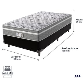 O conforto que sua casa precisa e a qualidade que você merece está na Kazamix! O Colchão Evolution é a escolha ideal para quem busca conforto, suporte e qualidade em cada noite de sono. Com Molas Ensacadas que oferecem um suporte individualizado, e um Pillow Euro que proporciona uma camada extra de suavidade, esse colchão transforma seu descanso em uma experiência de luxo. Com espuma D28 de alta densidade, o Evolution garante firmeza e conforto duradouros. Seu acabamento em poliéster diamante e bordado em matelassê trazem um toque de elegância e sofisticação ao seu ambiente. Além disso, o colchão é tratado com propriedades antiácaro e antialérgico, garantindo um sono mais saudável e seguro. Invista no seu bem-estar com o colchão Evolution, e experimente a combinação perfeita de conforto e durabilidade! Modelo: Evolution Marca: Probel Tamanho: Solteiro Dimensões: 88x188X32 (Largura x Comprimento x Altura) Conforto: Intermediário Sistema: Molas Ensacadas Pillow: Euro Pillow Peso Máximo recomendado: 110 kg (Por pessoa) Proteções: Antiácaro, antialérgico, antifungo, antimofo Garantia: 1 ano pelo FabricanteO conforto que sua casa precisa e a qualidade que você merece está na Kazamix! Eleve o conforto e a sofisticação do seu quarto com a Cama Box! Produzida em madeira de reflorestamento reforçada, a Cama Box combina qualidade, durabilidade e um design elegante, que confere leveza e modernidade ao seu dormitório. Sua estrutura robusta suporta até 150 kg por pessoa, garantindo a sustentação perfeita para o colchão e prolongando a vida útil do produto. Com uma altura ergonômica, ela oferece maior conforto ao deitar e levantar, enquanto o acabamento de alta qualidade se adapta a qualquer estilo de decoração, unindo praticidade e estilo. Não perca tempo! Adquira agora mesmo a sua Cama Box e transforme seu dormitório com conforto e elegância. Marca: KazaMix Modelo: Box Tamanho: Solteiro Dimensões: 88X188X35 (Largura x Comprimento x Altura) Estrutura: Madeira Peso máximo recomendado: 150 kg (Por Pessoa) Altura do Box: 25 cm Altura dos Pés: 10 cm Altura total: 35 cm Garantia: 03 meses Selo Ecologicamente Correto Atenção: Antes de finalizar sua compra, certifique-se de que as dimensões do produto sejam adequadas para serem transportadas pelos elevadores, portas, escadas e corredores de sua residência. Ressaltamos que não nos responsabilizamos pelo transporte do produto por meios específicos, como escadas, guinchos ou içamentos.O conforto que sua casa precisa e a qualidade que você merece está na Kazamix! O Colchão Evolution é a escolha ideal para quem busca conforto, suporte e qualidade em cada noite de sono. Com Molas Ensacadas que oferecem um suporte individualizado, e um Pillow Euro que proporciona uma camada extra de suavidade, esse colchão transforma seu descanso em uma experiência de luxo. Com espuma D28 de alta densidade, o Evolution garante firmeza e conforto duradouros. Seu acabamento em poliéster diamante e bordado em matelassê trazem um toque de elegância e sofisticação ao seu ambiente. Além disso, o colchão é tratado com propriedades antiácaro e antialérgico, garantindo um sono mais saudável e seguro. Invista no seu bem-estar com o colchão Evolution, e experimente a combinação perfeita de conforto e durabilidade! Modelo: Evolution Marca: Probel Tamanho: Solteiro Dimensões: 88x188X32 (Largura x Comprimento x Altura) Conforto: Intermediário Sistema: Molas Ensacadas Pillow: Euro Pillow Peso Máximo recomendado: 110 kg (Por pessoa) Proteções: Antiácaro, antialérgico, antifungo, antimofo Garantia: 1 ano pelo FabricanteO conforto que sua casa precisa e a qualidade que você merece está na Kazamix! Eleve o conforto e a sofisticação do seu quarto com a Cama Box! Produzida em madeira de reflorestamento reforçada, a Cama Box combina qualidade, durabilidade e um design elegante, que confere leveza e modernidade ao seu dormitório. Sua estrutura robusta suporta até 150 kg por pessoa, garantindo a sustentação perfeita para o colchão e prolongando a vida útil do produto. Com uma altura ergonômica, ela oferece maior conforto ao deitar e levantar, enquanto o acabamento de alta qualidade se adapta a qualquer estilo de decoração, unindo praticidade e estilo. Não perca tempo! Adquira agora mesmo a sua Cama Box e transforme seu dormitório com conforto e elegância. Marca: KazaMix Modelo: Box Tamanho: Solteiro Dimensões: 88X188X35 (Largura x Comprimento x Altura) Estrutura: Madeira Peso máximo recomendado: 150 kg (Por Pessoa) Altura do Box: 25 cm Altura dos Pés: 10 cm Altura total: 35 cm Garantia: 03 meses Selo Ecologicamente Correto Atenção: Antes de finalizar sua compra, certifique-se de que as dimensões do produto sejam adequadas para serem transportadas pelos elevadores, portas, escadas e corredores de sua residência. Ressaltamos que não nos responsabilizamos pelo transporte do produto por meios específicos, como escadas, guinchos ou içamentos.