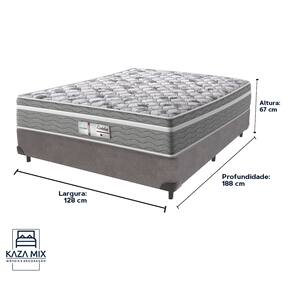 O conforto que sua casa precisa e a qualidade que você merece está na Kazamix! O Colchão Evolution é a escolha ideal para quem busca conforto, suporte e qualidade em cada noite de sono. Com Molas Ensacadas que oferecem um suporte individualizado, e um Pillow Euro que proporciona uma camada extra de suavidade, esse colchão transforma seu descanso em uma experiência de luxo. Com espuma D28 de alta densidade, o Evolution garante firmeza e conforto duradouros. Seu acabamento em poliéster diamante e bordado em matelassê trazem um toque de elegância e sofisticação ao seu ambiente. Além disso, o colchão é tratado com propriedades antiácaro e antialérgico, garantindo um sono mais saudável e seguro. Invista no seu bem-estar com o colchão Evolution, e experimente a combinação perfeita de conforto e durabilidade! Modelo: Evolution Marca: Probel Tamanho: Viúvo Dimensões: 128x188X18 (Largura x Comprimento x Altura) Conforto: Intermediário Sistema: Molas Ensacadas Pillow: Euro Pillow Peso Máximo recomendado: 110 kg (Por pessoa) Proteções: Antiácaro, antialérgico, antifungo, antimofo Garantia: 1 ano pelo FabricanteO conforto que sua casa precisa e a qualidade que você merece está na Kazamix! Eleve o conforto e a sofisticação do seu quarto com a Cama Box! Produzida em madeira de reflorestamento reforçada, a Cama Box combina qualidade, durabilidade e um design elegante, que confere leveza e modernidade ao seu dormitório. Sua estrutura robusta suporta até 150 kg por pessoa, garantindo a sustentação perfeita para o colchão e prolongando a vida útil do produto. Com uma altura ergonômica, ela oferece maior conforto ao deitar e levantar, enquanto o acabamento de alta qualidade se adapta a qualquer estilo de decoração, unindo praticidade e estilo. Não perca tempo! Adquira agora mesmo a sua Cama Box e transforme seu dormitório com conforto e elegância. Marca: KazaMix Modelo: Box Tamanho: Viúvo Dimensões: 128X188X35 (Largura x Comprimento x Altura) Estrutura: Madeira Peso máximo recomendado: 150 kg (Por Pessoa) Altura do Box: 25 cm Altura dos Pés: 10 cm Altura total: 35 cm Garantia: 03 meses Selo Ecologicamente Correto Atenção: Antes de finalizar sua compra, certifique-se de que as dimensões do produto sejam adequadas para serem transportadas pelos elevadores, portas, escadas e corredores de sua residência. Ressaltamos que não nos responsabilizamos pelo transporte do produto por meios específicos, como escadas, guinchos ou içamentos.