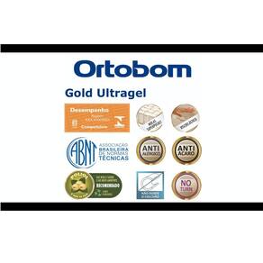 Gold Ultra Gel é o representante Super Premium dentre os produtos Ortobom. Sua estrutura é composta pelo molejo Superpocket (ensacadas individualmente) que fazem o peso de um corpo não interferir no conforto do outro. Possui em sua camada de conforto a inovadora espuma Viscogel D45, que é a espuma com a mais alta tecnóloga do mercado e que se adapta como nenhuma outra a temperatura e contornos do seu corpo. Possui Malha Belga Super Soft de alta qualidade no tampo, que proporciona conforto e uma beleza sem igual, sua lateral é confeccionada em Camurça 3D que apresenta um visual único ao produto. Recebe um tratamento inovador, o Evo Care Vital, um composto de Óleo de Jojoba, Vitamina E e Aloe Vera, que protege a pele contra o envelhecimento precoce. Este tratamento funciona mesmo com a utilização do lençol, pois as fibras do colchão absorvem estes agentes. Recebe tratamento antiácaro e antialérgico. Devido a tecnologia No Turn o Colchão Gold Ultra Gel não precisa ser virado. Sem duvidas neste produto encontrará o que há de mais moderno e melhor no mercado.