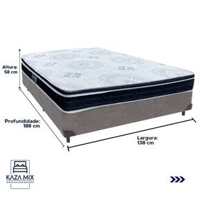 O conforto que sua casa precisa e a qualidade que você merece está na Kazamix! O Colchão Orthosono One Face une conforto firme e durabilidade com espuma D33 de alta qualidade. Com Pillow Top, oferece uma camada extra de conforto para noites de sono ainda mais relaxantes. O revestimento em poliéster com bordado contínuo proporciona maciez e elegância, enquanto a tecnologia No Turn dispensa a necessidade de virar o colchão. Conta com base antiderrapante para maior estabilidade e tratamento antiácaro e antifungo, garantindo proteção contra alérgenos. Produzido com EPS, contribui para melhor isolamento térmico e maior leveza do produto. Certificado pelo INMETRO e fabricado com materiais sustentáveis, é a escolha ideal para quem busca qualidade e bem-estar. Modelo: Orthosono Marca: Anjos Tamanho: Casal Dimensões: 138x188X18 (Largura x Comprimento x Altura) Conforto: Firme Sistema: Espuma D33 Pillow: Pillow Top Peso Máximo recomendado: 140 kg (Por pessoa) Proteções: Antiácaro, antialérgico, antifungo, antimofo Garantia: 1 ano pelo FabricanteO conforto que sua casa precisa e a qualidade que você merece está na Kazamix! Eleve o conforto e a sofisticação do seu quarto com a Cama Box! Produzida em madeira de reflorestamento reforçada, a Cama Box combina qualidade, durabilidade e um design elegante, que confere leveza e modernidade ao seu dormitório. Sua estrutura robusta suporta até 150 kg por pessoa, garantindo a sustentação perfeita para o colchão e prolongando a vida útil do produto. Com uma altura ergonômica, ela oferece maior conforto ao deitar e levantar, enquanto o acabamento de alta qualidade se adapta a qualquer estilo de decoração, unindo praticidade e estilo. Não perca tempo! Adquira agora mesmo a sua Cama Box e transforme seu dormitório com conforto e elegância. Marca: KazaMix Modelo: Box Tamanho: Casal Dimensões: 138X188X35 (Largura x Comprimento x Altura) Estrutura: Madeira Peso máximo recomendado: 150 kg (Por Pessoa) Altura do Box: 25 cm Altura dos Pés: 10 cm Altura total: 35 cm Garantia: 03 meses Selo Ecologicamente Correto Atenção: Antes de finalizar sua compra, certifique-se de que as dimensões do produto sejam adequadas para serem transportadas pelos elevadores, portas, escadas e corredores de sua residência. Ressaltamos que não nos responsabilizamos pelo transporte do produto por meios específicos, como escadas, guinchos ou içamentos.