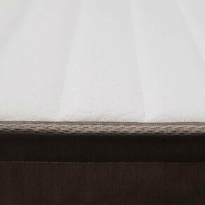 O revestimento em Malha Lacê garante toque suave, enquanto a lateral em Linho Marrom adiciona um acabamento elegante e contemporâneo. Conta ainda com tratamentos antialérgico e antiácaro, promovendo um ambiente de sono mais higiênico e protegido.