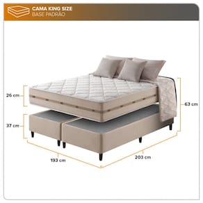 Um colchão precisa de um ótimo box para ficar seguro e estável, que seja forte e bonito e é isso que nosso box oferece. O box é produzido com madeira de Eucalipto para garantir uma estrutura firme e resistente. O acabamento em suede dá um toque sofisticado e moderno à base, facilitando também a limpeza dela. Para proporcionar ainda mais estabilidade, os pés são de plástico.