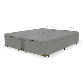 Cama Box KING Bipartido Baú Canvas Cinza - 193x203 - Branco