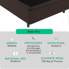 A Base Box Bravus da V-Store une funcionalidade e elegância, sendo a escolha perfeita para quem busca praticidade e durabilidade. Feita com madeira reflorestada, ela oferece excelente sustentação para o seu colchão, enquanto seu revestimento em tecido sintético garante resistência e facilidade de manutenção. Seu design compacto e sofisticado complementa a decoração do quarto com estilo.