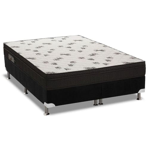 Cama Box King: Colchão Espuma D45 Ortobom Light Saúde Ortopilow + Base CRC Suede Black(186x198)