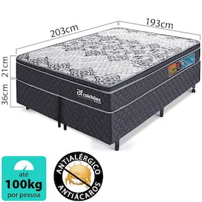 Características do BOX - Tamanho Box: King - Altura: 36 cm - Largura: 193 cm - Comprimento: 203 cm