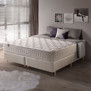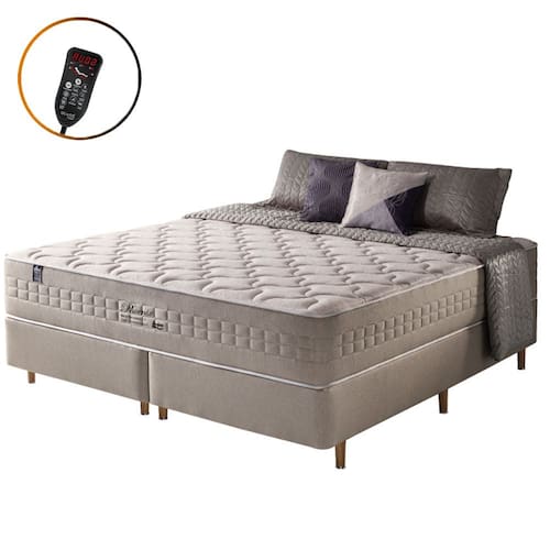 Conjunto Cama Box Queen Size Magnético Infravermelho Massageador e Bio Quântico Molas Ensacadas Phoenix.