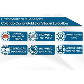 Colchão King Molas Ensacadas Visco Gel Gold Star Vitagel Euro Pillow (193x203x32) - Castor
